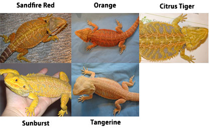 A seguir está uma lista de dragões barbudos com uma mistura de amarelo e outras cores: