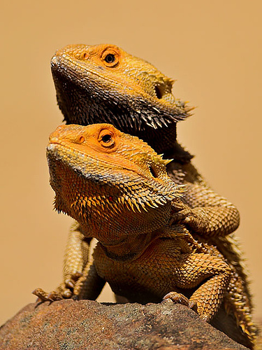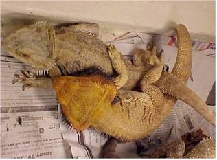 Falando em criação de mais de um Pogona, uma coisa curiosa acontece freqüentemente quando mais de um Pogona é criado junto no mesmo terrário.