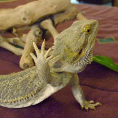 Olhando bem, vai parecer que seu pequeno dragão está se alongando ou apenas dizendo um "olá!" para você. No meio selvagem, Pogonas são semi-sociáveis e exibem seus movimentos para se comunicar com outras espécies. Jovens e fêmeas podem acenar com a pata como um sinal de submissão ou não ter a intenção de ameaçar outro