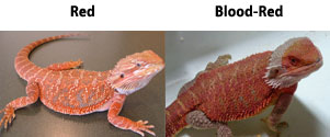 Dragões barbudos vermelhos são criados por meio de cruzamento de dois dragões diferentes, com uma grande quantidade de corante vermelho. Isso faz com que seus filhos a ter uma aparência muito mais vermelho. Os mais gerações que são criados, mais profunda a coloração vermelha pode se tornar.