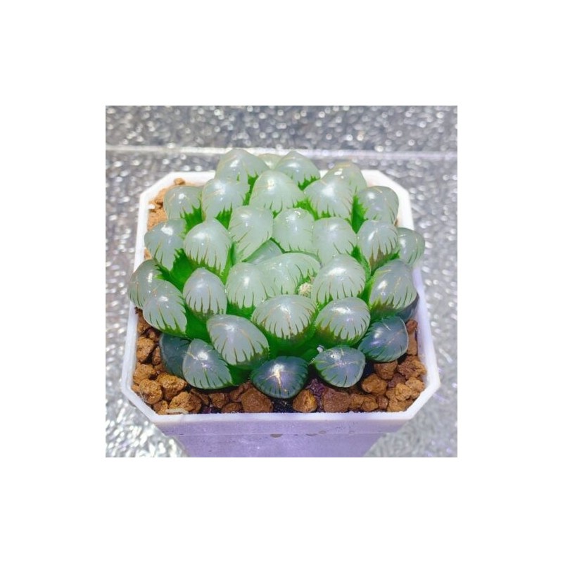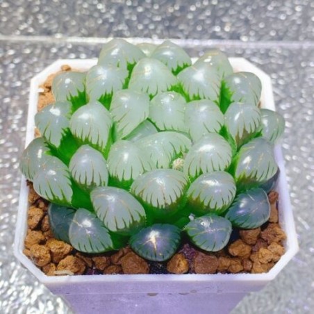 Explore a elegante simplicidade da suculenta Gelo Jade, também conhecida como Haworthia Cooperi Liliaceae. Esta planta cativante traz consigo uma estética que encanta os olhos e tranquiliza a mente. Suas folhas, que se assemelham a pequenos cristais de gelo, formam rosetas compactas, dando um toque de natureza ao ambiente em que é colocada.