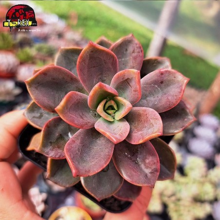 Descubra a encantadora Echeveria Corvus, uma suculenta exótica e resistente, perfeita para decorar seu jardim. Suas folhas em forma de roseta exibem uma combinação de tons verde-azulados e bordas avermelhadas, criando um visual único. Compre agora e desfrute da beleza e facilidade de cuidar desta planta deslumbrante.